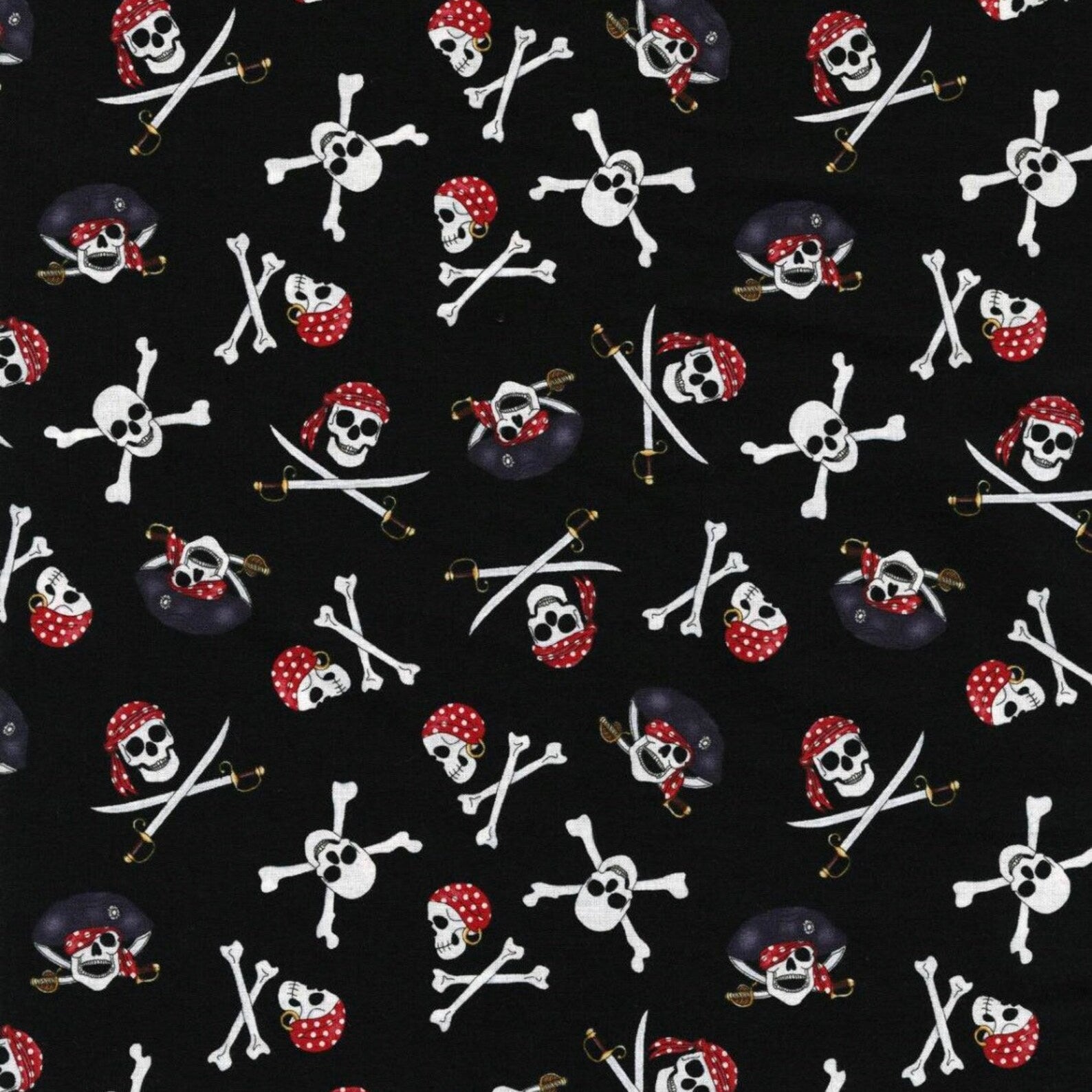 Black Pirates and Skulls | 100% Cotton Fabric