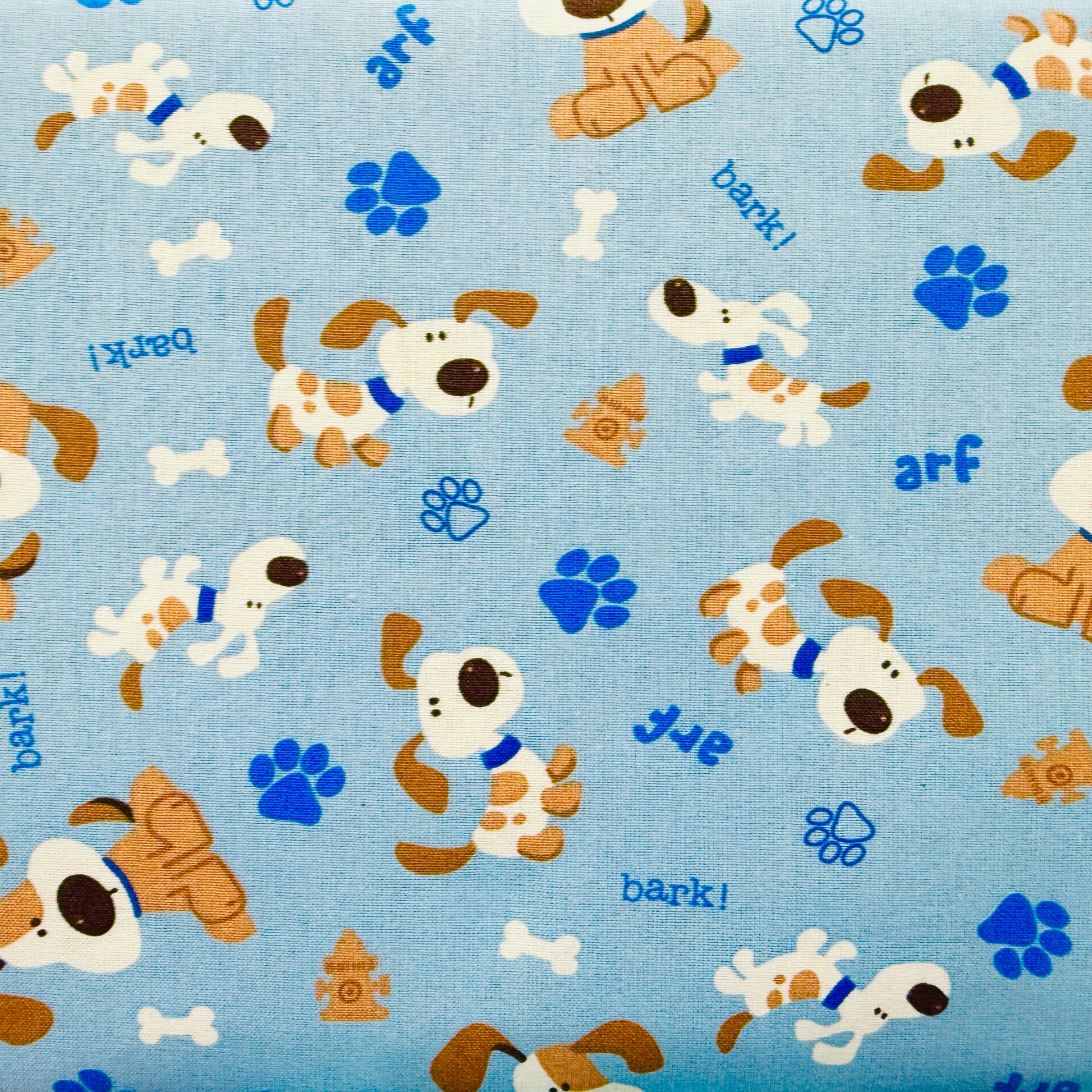 Blue Puppy Dogs Woof & Paw Prints | 100% Cotton Fabric