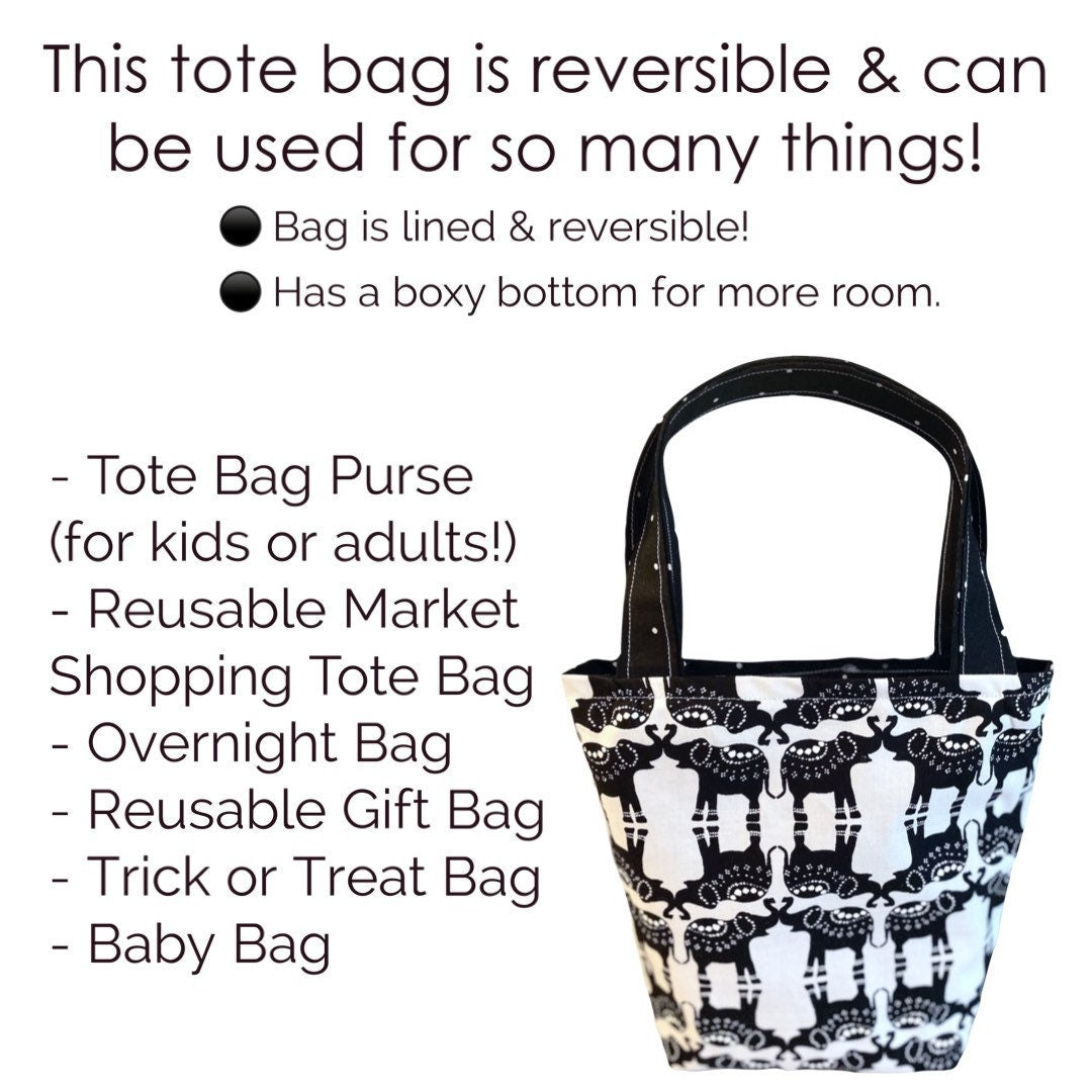 ♥ This tote bag is lined/reversible can be used as a shopping market tote, diaper or overnight bag, Christmas or Birthday gift bag and more!