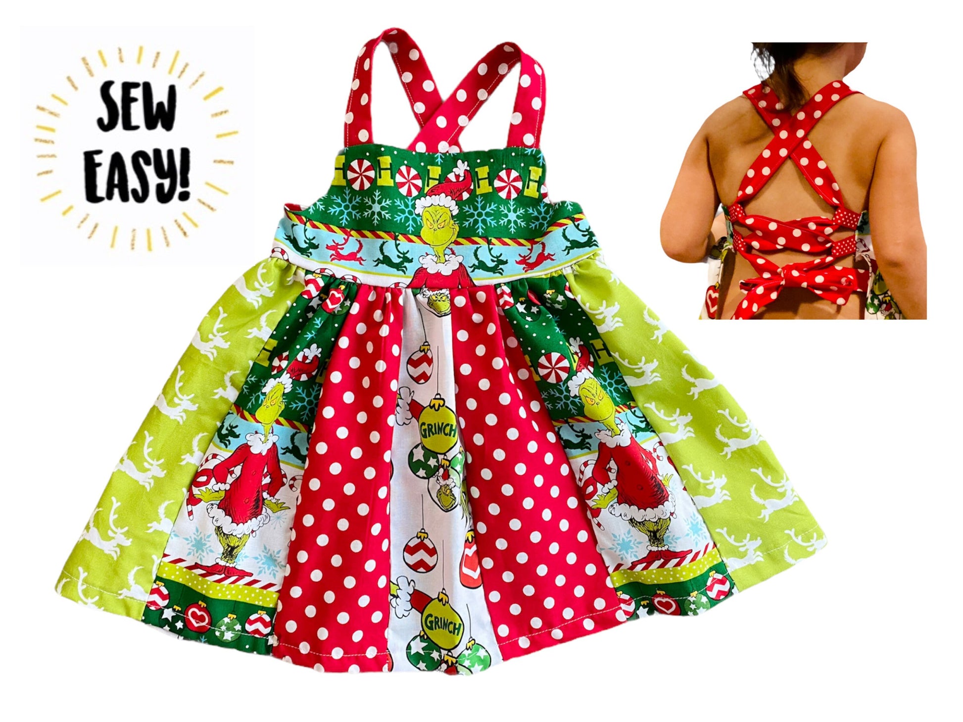 ♥ This patchwork top dress will fit through several sizes. The back is adjustable with ties and once your little one has outgrown the dress in length, it fits as a top!
