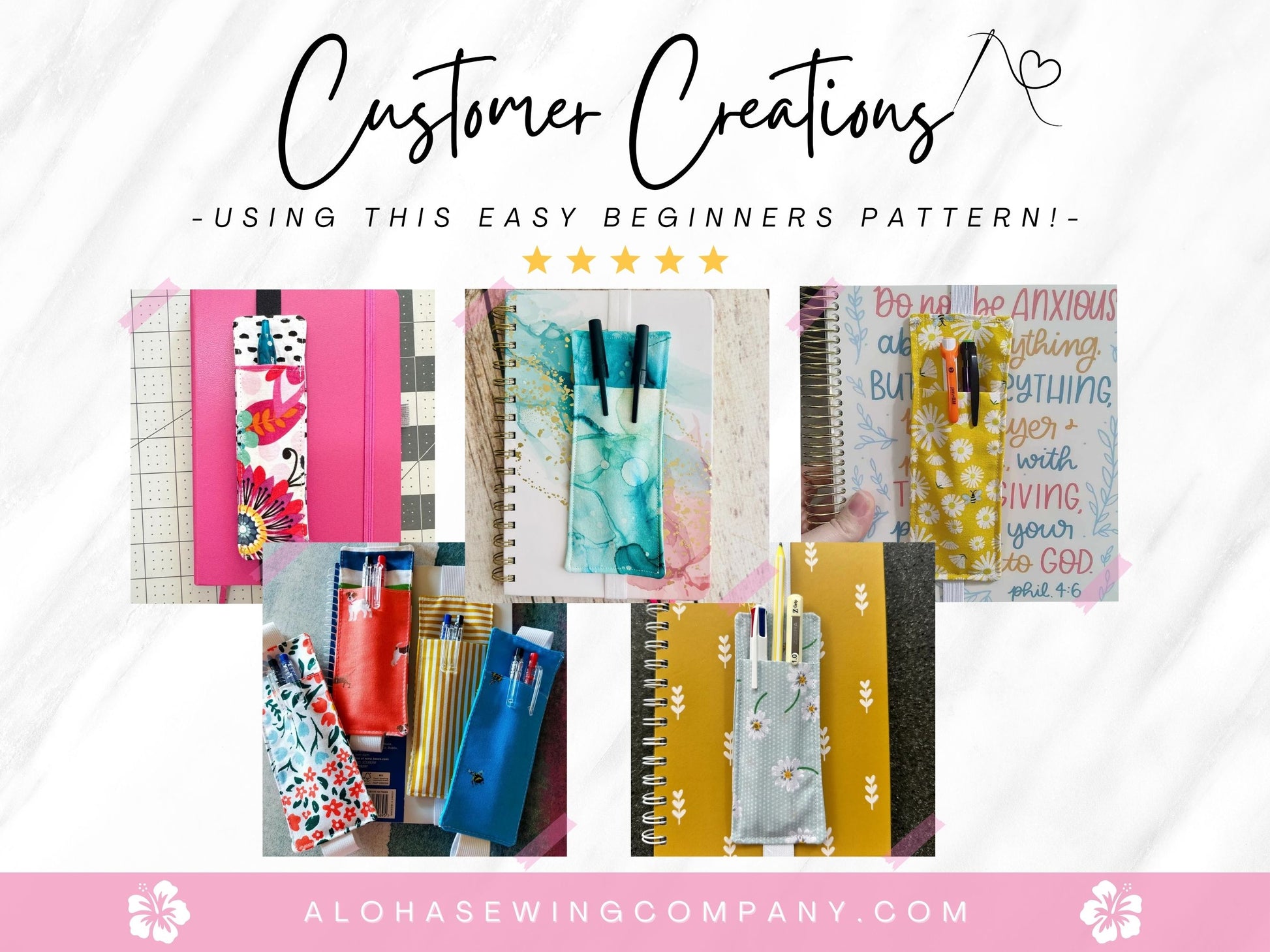 ♥ You will be able to sew this Fabric Pen or Pencil Holder for ANY size binder, book, notebook. journal or planner. This printable PDF Sewing Pattern will instruct you what size to cut your elastic for any size as well. It takes about 10 minutes to complete and you can use any type of fabric you have on hand, but I recommend cotton.