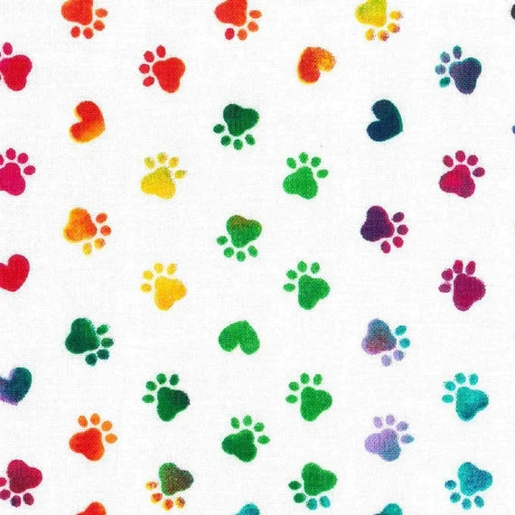 White with Tie Dye Animal Paws | 100% Cotton Fabric